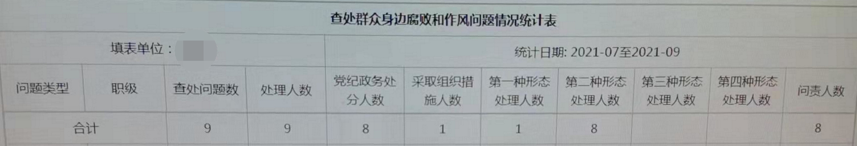 2021年启东市第三季度群众身边的腐败和作风问题统计